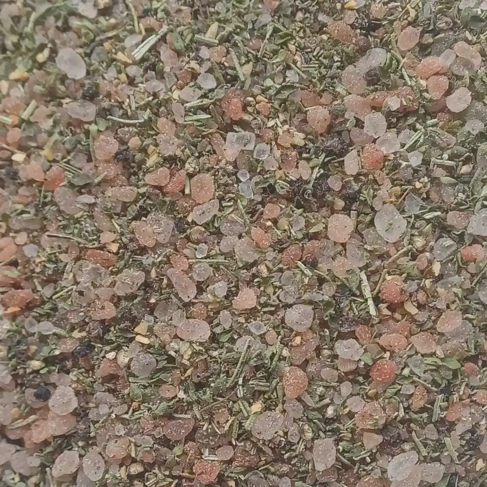 Ingredients: Himalaya salt and dried spices, Rosemary, Garlic, Pepper and Oregano.